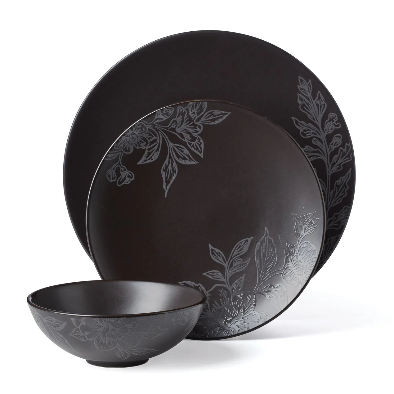 SOFTDEALZ | Roseto 12-Piece Dinnerware Set, Charcoal