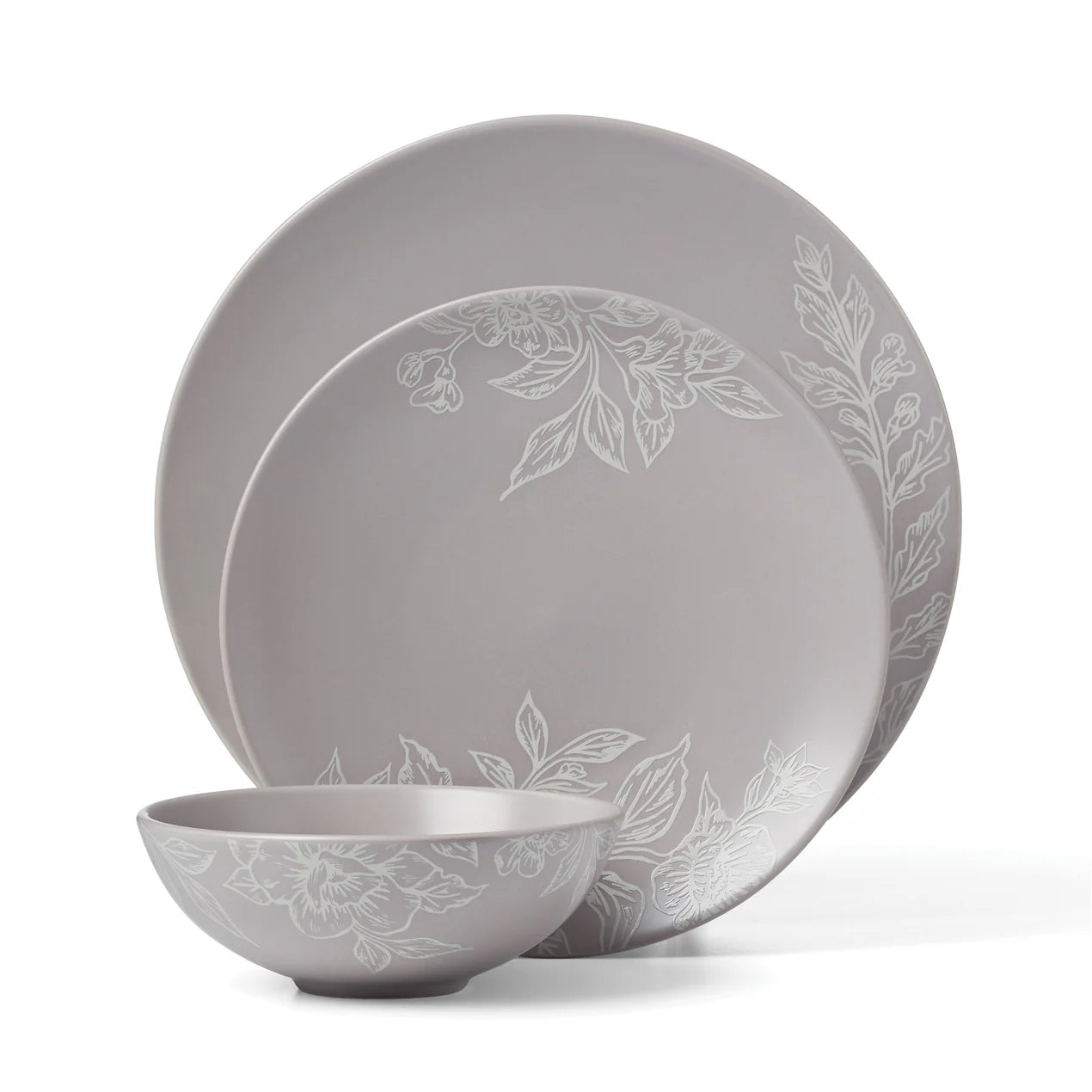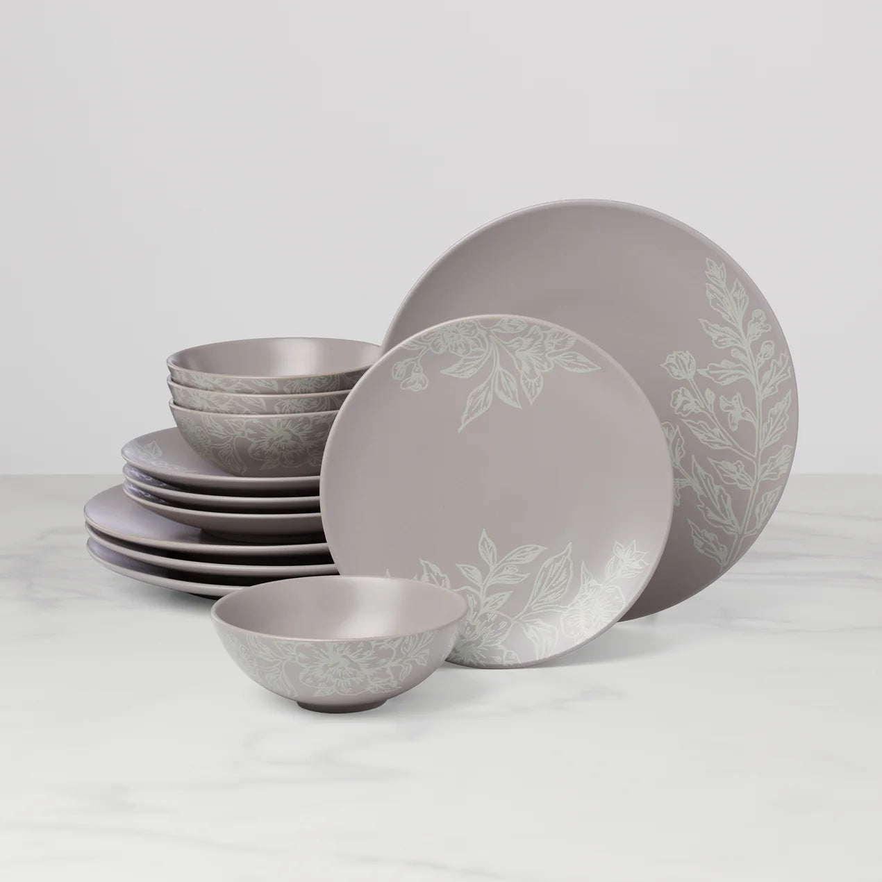SOFTDEALZ | Roseto 12-Piece Dinnerware Set, Pumice